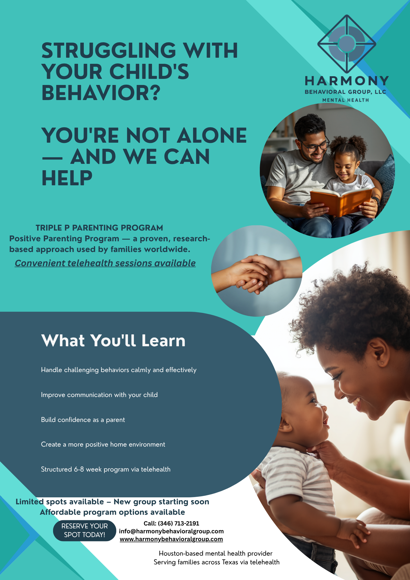 Our Triple P Parenting Program is a proven, research-based approach used worldwide to help parents manage challenging behaviors, improve communication, and build a more positive home environment.